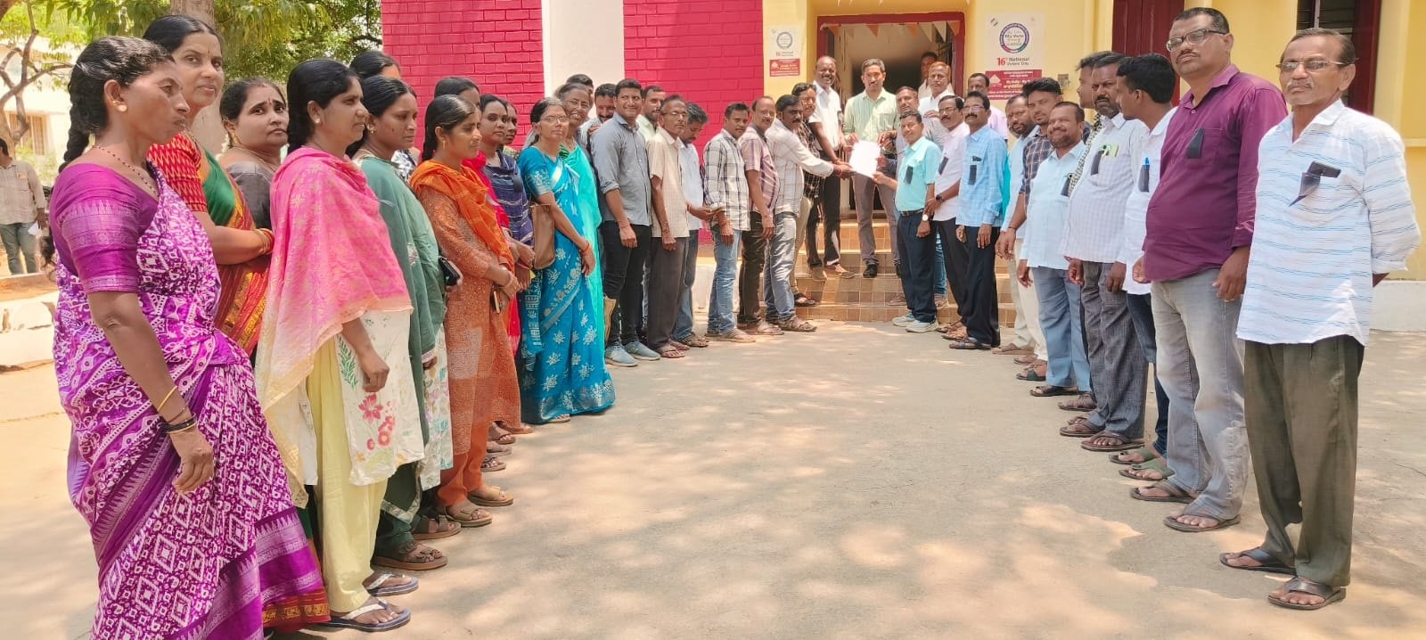 వరంగల్ వాయిస్, రఘునాథపల్లి : తెలంగాణ ఉపాధ్యాయుల అపరిష్కృత సమస్యలను తక్షణమే పరిష్కరించాలని డిమాండ్ చేస్తూ రఘునాథపల్లి మండలంలో ఉపాధ్యాయులు ఆందోళన చేపట్టారు. తెలంగాణ ఉద్యోగుల జాయింట్ యాక్షన్ కమిటీ రాష్ట్ర శాఖ పిలుపు మేరకు శుక్రవారం మధ్యాహ్న భోజన విరామ సమయంలో ఉపాధ్యాయులు నల్ల బ్యాడ్జీలు ధరించి తహసీల్దార్ కార్యాలయం ముందు ధర్నా నిర్వహించారు. అనంతరం తమ డిమాండ్లతో కూడిన వినతిపత్రాన్ని తహసీల్దార్కు సమర్పించారు. జూన్ 2 నాటికి కొత్త పే రివిజన్ కమిషన్ నివేదికను అమలు చేయాలి. ఉపాధ్యాయులకు రావాల్సిన అన్ని రకాల పెండింగ్ బిల్లులను రెండు విడతల్లో తక్షణమే చెల్లించాలి. మే 1నుంచి ఉద్యోగులు, ఉపాధ్యాయులకు నగదు రహిత వైద్య సౌకర్యం కల్పించేలా హెల్త్ కార్డులను అమలు చేయాలి. సీపీఎస్ విధానాన్ని రద్దు చేయాలి. ముఖ్యంగా 2003 డీఎస్సీ ఉపాధ్యాయులకు తక్షణమే పాత పెన్షన్ విధానాన్ని వర్తింపజేయాలి. ఈ సందర్భంగా జేఏసీ నాయకులు మాట్లాడుతూ.. ఉపాధ్యాయుల సమస్యల పట్ల ప్రభుత్వం నిర్లక్ష్య వైఖరిని వీడాలని, న్యాయమైన డిమాండ్లను పరిష్కరించని యెడల పోరాటాన్ని మరింత ఉధృతం చేస్తామని హెచ్చరించారు. ఈ కార్యక్రమంలో పీఆర్టీయూ టీఎస్ అధ్యక్ష, ప్రధాన కార్యదర్శులు బలభక్తుల పరిపూర్ణ చారి, ఆనందాసు పవన్ కుమార్, యూటీఎఫ్ అధ్యక్ష, ప్రధాన కార్యదర్శులు వై. యాదవరెడ్డి, టీపీటీఎఫ్ అధ్యక్షులు నాగభూషణం, టీయూపీఎస్ యూనియన్ బాధ్యులు పంచాక్షరి, మండలంలోని వివిధ పాఠశాలల ఉపాధ్యాయులు పాల్గొన్నారు.