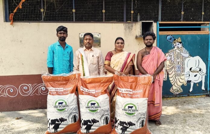 వరంగల్ వాయిస్, గణపురం : జయశంకర్ భూపాలపల్లి జిల్లా గణపురం మండలంలోని చారిత్రక సంపద, కాకతీయుల కళాక్షేత్రమైన శ్రీ భవాని సహిత గణపేశ్వరాలయం (కోటగుళ్ళు) గోశాలలోని గోమాతలకు శనివారం దాన బస్తాలను వితరణ చేశారు. పరకాలలోని శ్రీ నారాయణ ఇంగ్లీష్ మీడియం పాఠశాల కరస్పాండెంట్ పోతుగంటి శశిధర చారి, ప్రిన్సిపల్ పోతుగంటి స్వప్న చారి దంపతులు తమ 25వ వివాహ వార్షికోత్సవాన్ని పురస్కరించుకొని ఈ సేవా కార్యక్రమాన్ని చేపట్టారు. తమ రజతోత్సవ వివాహ వేడుకల సందర్భంగా ఈ దంపతులు ఆలయంలోని స్వామివారికి ప్రత్యేక అభిషేకాలు నిర్వహించారు. అనంతరం గోశాలను సందర్శించి గోమాతలకు దాన బస్తాలతో పాటు పండ్లను తినిపించారు. ఈ సందర్భంగా ఆలయ అర్చకులు జూలపల్లి నాగరాజు వారికి ప్రత్యేక ఆశీర్వచనాలు అందించి, తీర్థప్రసాదాలను అందజేశారు. పురాతన ఆలయ ప్రాంగణంలోని గోశాల నిర్వహణకు మరియు గోమాతల సంరక్షణకు దాన బస్తాలను అందజేసిన శశిధరాచారి, స్వప్న దంపతులను కోటగుళ్లు పరిరక్షణ కమిటీ సభ్యులు అభినందిస్తూ, వారికి ప్రత్యేక కృతజ్ఞతలు తెలిపారు. ఆధ్యాత్మిక వేడుకల్లో భాగంగా ఇలాంటి సేవా కార్యక్రమాలు నిర్వహించడం పట్ల స్థానికులు హర్షం వ్యక్తం చేశారు.