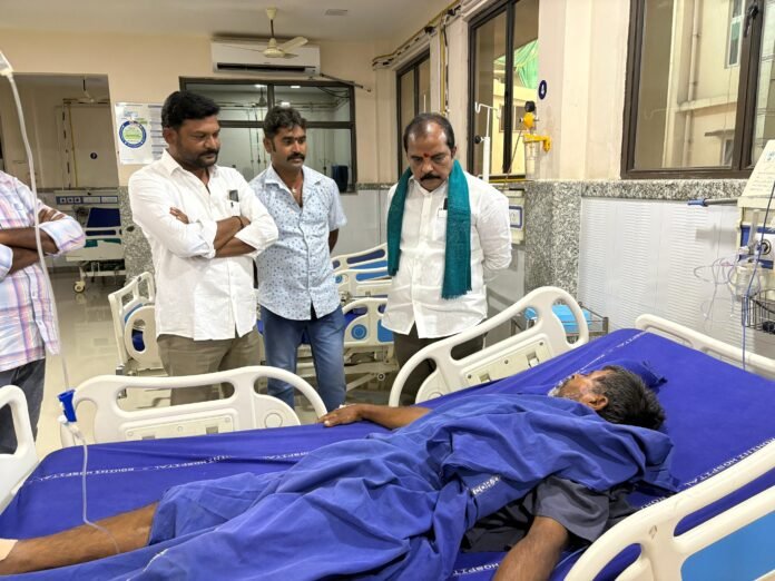 (వరంగల్ వాయిస్, దామెర) : మండలంలోని వెంకటాపురం గ్రామ కాంగ్రెస్ పార్టీ అధ్యక్షులు గోల్కొండ రాజయ్యను హనుమకొండ డీసీసీ అధ్యక్షుడు, కుడా చైర్మన్ ఇనగాల వెంకట్రామ్ రెడ్డి సోమవారం పరామర్శించారు. వారం రోజుల క్రితం జరిగిన రోడ్డు ప్రమాదంలో తీవ్రంగా గాయపడిన రాజయ్య ప్రస్తుతం హనుమకొండలోని రోహిణి ఆసుపత్రిలో చికిత్స పొందుతున్నారు. ఈ సందర్భంగా రాజయ్య ఆరోగ్య పరిస్థితిని డాక్టర్లను అడిగి తెలుసుకున్న ఇనగాల, బాధితుడికి మెరుగైన వైద్యం అందించాలని సూచించారు. రాజయ్య త్వరగా కోలుకోవాలని ఆయన ఆకాంక్షించారు.స్థానిక కాంగ్రెస్ నాయకులు, కార్యకర్తలు పాల్గొన్నారు.