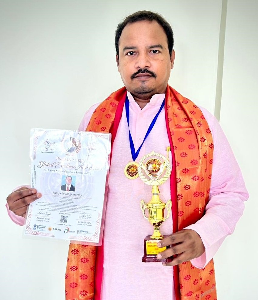 వరంగల్ వాయిస్, నర్సంపేట : వరంగల్ మట్టిలో పుట్టిన ప్రతిభ జాతీయ స్థాయిలో మెరిసింది. డిజిటల్ మీడియా, జర్నలిజం రంగాల్లో నిబద్ధతతో పనిచేస్తూ సమాజంపై చెరగని ముద్ర వేసిన ప్రముఖ జర్నలిస్ట్ రాంపెల్లి లింగమూర్తికి ప్రతిష్టాత్మకమైన “పద్మ శ్రీ గ్లోబల్ ఎక్సలెన్స్ అవార్డు 2026” వరించింది. ఉత్తరప్రదేశ్లోని ప్రయాగరాజ్కు చెందిన జివ్రాన్ ఫౌండేషన్ వారు దేశవ్యాప్తంగా వివిధ రంగాల్లో అద్భుత ప్రతిభ కనబరిచిన వారిని గుర్తించి ఈ గౌరవాన్ని అందజేశారు. ప్రజా సమస్యలపై అలుపెరగని పోరాటం, నిష్పక్షపాత వార్తా సేకరణ, డిజిటల్ మీడియాలో వినూత్న పోకడలను పరిచయం చేయడం వంటి అంశాల్లో లింగమూర్తి చూపిన ప్రతిభను నిర్వాహకులు ప్రత్యేకంగా కొనియాడారు. సమాజంలో జరుగుతున్న పరిణామాలను ఎప్పటికప్పుడు ప్రజలకు చేరవేస్తూ, వారిలో చైతన్యం నింపడంలో ఆయన పోషించిన పాత్రను ఈ సందర్భంగా గుర్తు చేసుకున్నారు. కేవలం జర్నలిజానికే పరిమితం కాకుండా, లింగమూర్తి MBA, MCJ, M.Sc (Psychology) వంటి ఉన్నత విద్యార్హతలు సాధించి, సైకాలజీ మరియు పబ్లిక్ రిలేషన్స్ రంగాల్లోనూ విశేషమైన పట్టు సాధించారు. ఈ బహుముఖ ప్రజ్ఞ ఆయనను ఒక విశ్వసనీయ జర్నలిస్ట్గా నిలబెట్టింది. ప్రభుత్వ పథకాలు, సంక్షేమ ఫలాలను సామాన్యులకు అర్థమయ్యే రీతిలో వివరించడంలో ఆయన శైలి ప్రత్యేకమైనది. అవార్డు అందుకున్న అనంతరం ఆయన మాట్లాడుతూ.. “జాతీయ స్థాయిలో ఈ గౌరవం లభించడం నా బాధ్యతను మరింత పెంచింది. జర్నలిజం పట్ల నేను చూపిస్తున్న నిబద్ధతకు లభించిన ఈ గుర్తింపు, భవిష్యత్తులో మరింత ఉత్సాహంగా పనిచేయడానికి స్ఫూర్తినిస్తుంది. నిరంతరం ప్రజాపక్షాన ఉండి, సమాజ శ్రేయస్సు కోసం పాటుపడతాను,” అని భావోద్వేగంగా పేర్కొన్నారు.